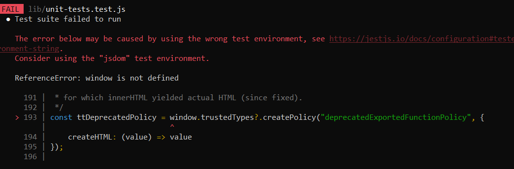 no matter window.trustedTypes or window?.trustedTypes, the jest always complains