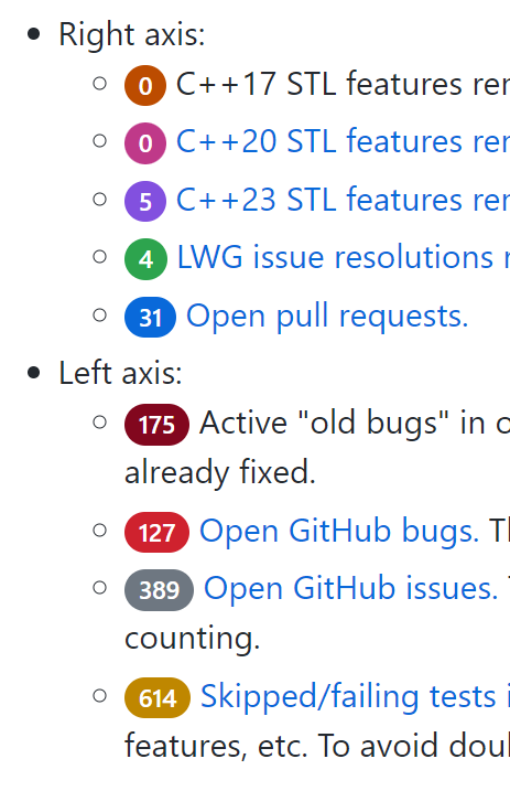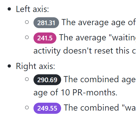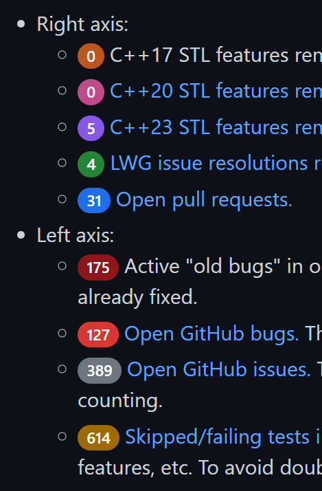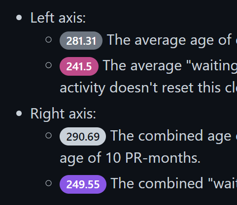 color-bg-severe-emphasishave no inherent meaning, and are being used for their colors only.--color-scale-red-7. The GitHub Issues and Average Age datasets are gray lines, soCounter--primaryresults in a readable gray for both dark mode and light mode. Finally, the Combined Age dataset uses the default foreground color (i.e. text color), so for its counter we use inverted colors: the counter's background is the default foreground color, while the counter's foreground is the default canvas color.<h1>, I usep-3padding for all sides. (Previously, I reduced padding on the top, because the Status Chart had a bit of blank space above its title.)npm updatenpm install [dependencies]@latestbuilt/status_chart.mjs" commit to make the live preview work, which will accumulate merge conflicts.📉 Live preview: stephantlavavej.github.io/STL/