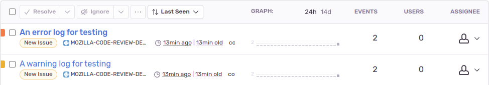 As you can see on the screenshot, even with the extra context (stored in Additional data as before) the messages are still well grouped in Sentry, 1 issue associated with 2 events in the 2 cases.