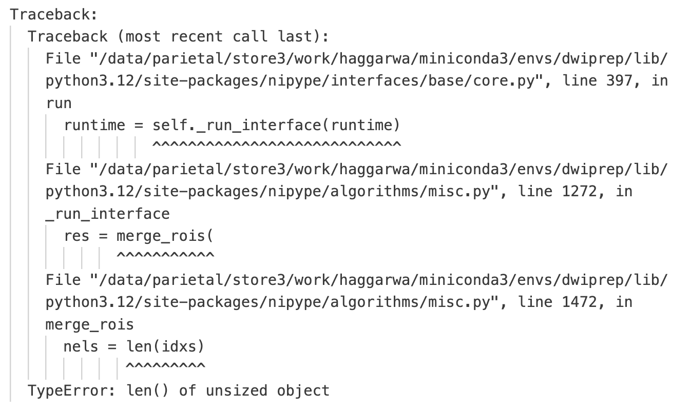 As reported in the neurostars post, I am trying to run bedpostx_parallel workflow in old (?) nipype. It works fine during all of my test runs on downsampled data (and even some previous runs on full res data).