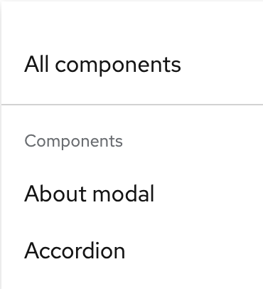 @evwilkin looks great!! My only comment is, are we going to call that nav item "View all components"? It feels weird to me to have an "action" as a nav item. Maybe we could simplify it to "All components" (?) Curious what others think! |