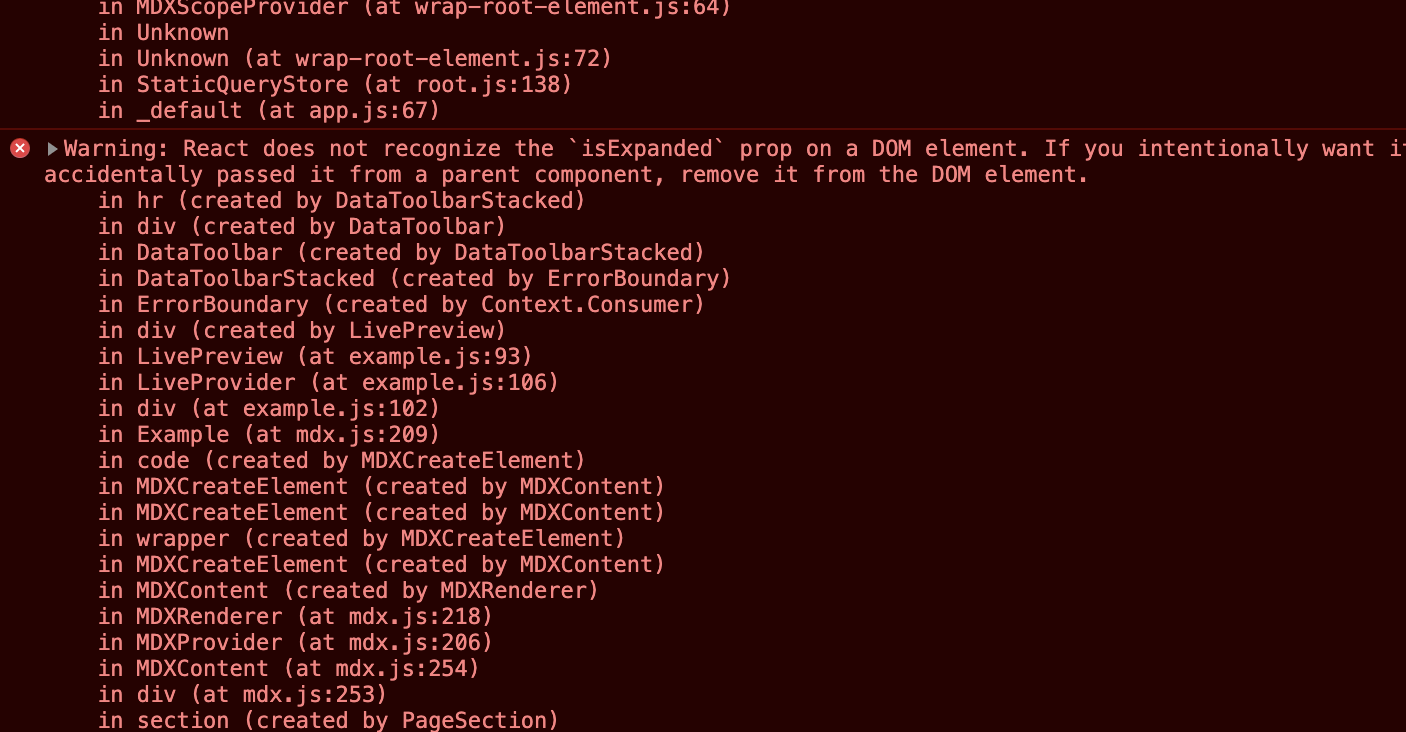 Warning: React does not recognize the `isExpanded` prop on a DOM element. If you intentionally want it to appear in the DOM as a custom attribute, spell it as lowercase `isexpanded` instead. If you accidentally passed it from a parent component, remove it from the DOM element.