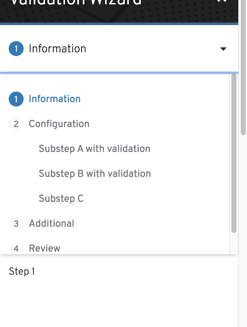 The wizard title also got an In mobile view, hitting the ESC key will first close the Nav dropdown if it's open While the wizard is open, other elements in the document body should have the |