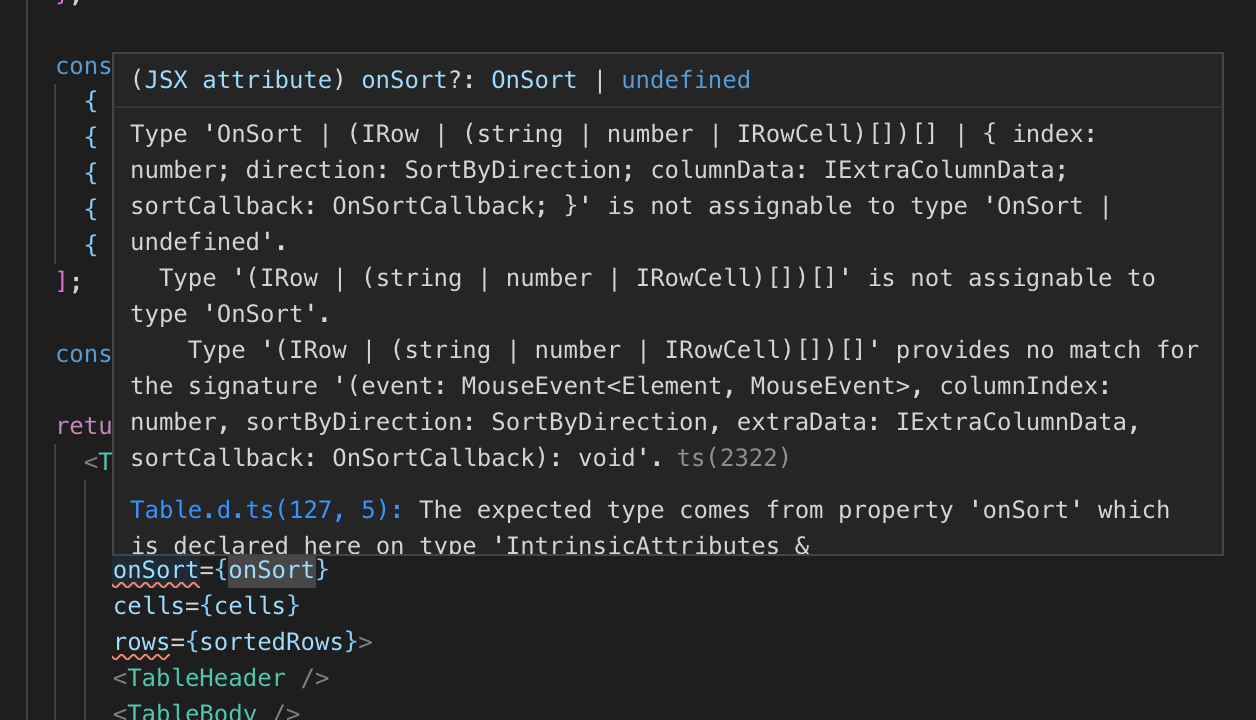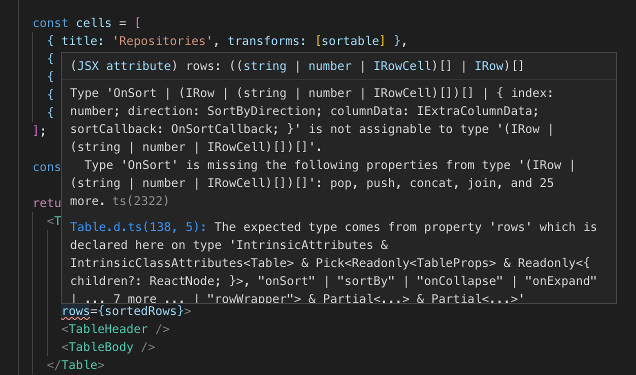 | <Table caption="Sortable Table" sortBy={sortBy} onSort={onSort} cells={cells} rows={sortedRows}> |