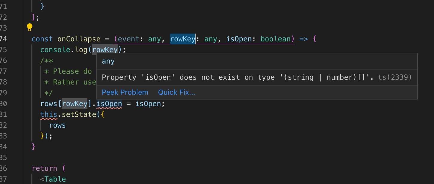 // then set state with `rows`The fix was simple, just create a new array based off of the There have been some enhancements made to the selectable rows doc, and I think further enhancements would be welcome. That's the best and solution I can think of at the moment. In that case, we can close this PR and resurrect it as time allows as an addition to the docs instead of a refactor. Does that cover all our bases? I will send a PR to fix the in-place mutations to soften the problem in the mean time. Let me know what you think, sorry for the wall, just wanna make sure all the context was captured for anyone interested to see. @riccardo-forina @mturley lemme know what you think. |