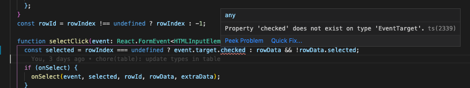 onSelectin Table from(event: React.ChangeEvent<HTMLInputElement>) => voidto(event: React.FormEvent<HTMLInputElement>) => void