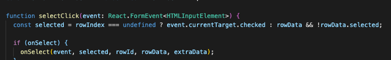 onSelectin Table from(event: React.ChangeEvent<HTMLInputElement>) => voidto(event: React.FormEvent<HTMLInputElement>) => voidthat'd be helpful for building our breaking change release notes.