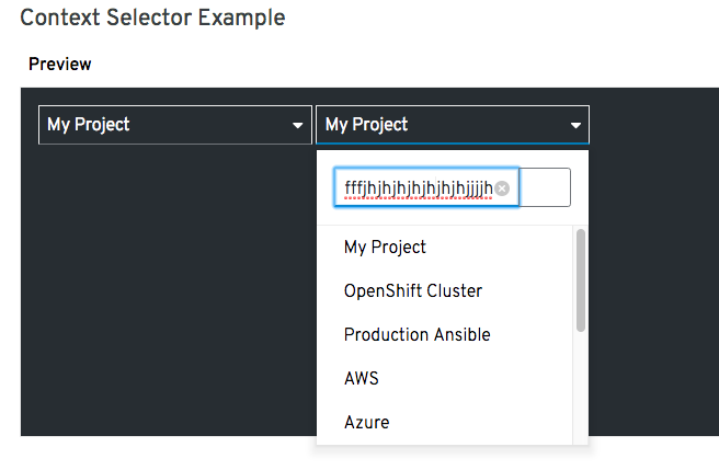 | | `.pf-c-context-selector__menu-menu` | `<ul>` | Initiaties an unordered list of menu items that sits under the input container. | | ||