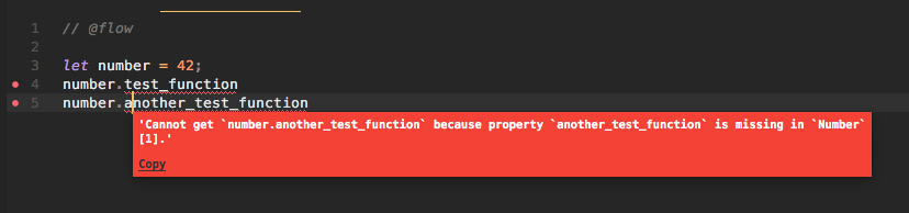 This plugin uses Flow (javascript static type checker from Facebook) under the hood.