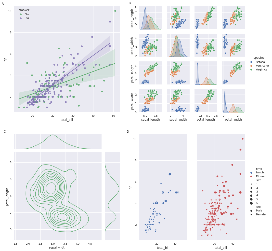- subplots for seaborngrid: Arranging figure-level seaborn plots using patchworklib