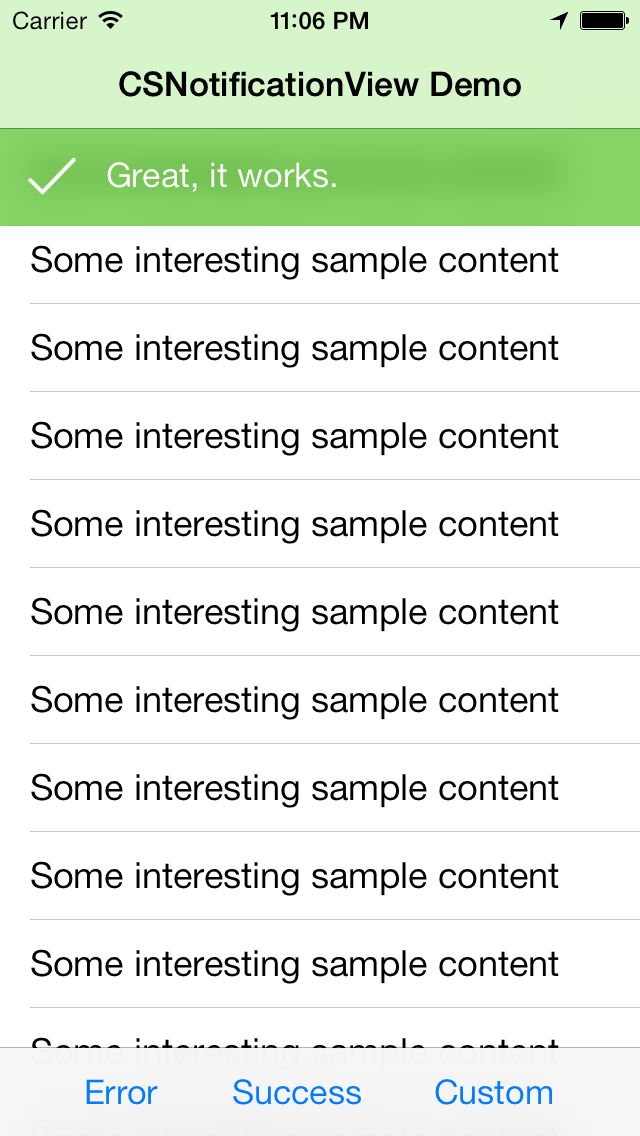 [note dismissWithStyle:CSNotificationViewStyleSuccess message:@"Success!"