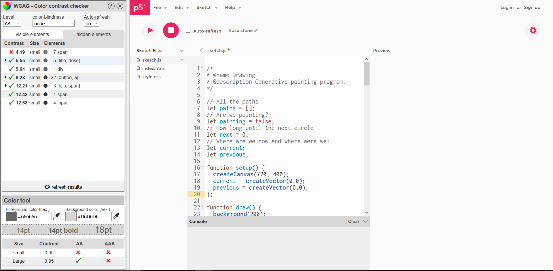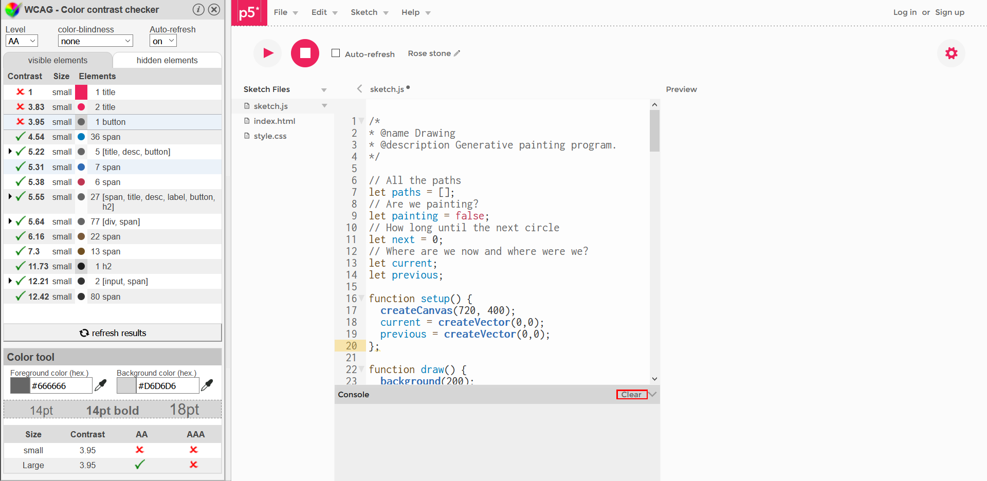@catarak Can you please help me fix the 'Clear' button's failing check (marked in the above screenshot). It is currently using the 'inactive-text' variable's value. If I change the variable value to a more contrasting color, even the line numbers, project folders become more contrasting and begin competing for visual attention wrt the code lines.