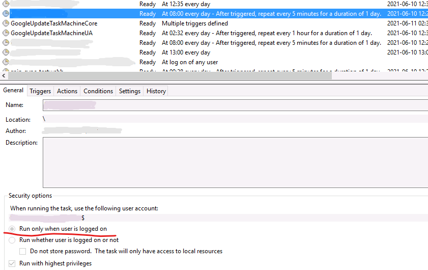 I can confirm that this pull request solved the problem for me on version 3.0.0 of the module. First of all the modules documentation wasn't clear that you needed to not use the Before applying this pull request the module sets the scheduled task to "Run only when user is logged on": And this doesn't work on a gMSA's as shown in the History of the scheduled task: But by applying @sigv fix it solved my problem by setting the task correctly to "Run whether user is logged on or not". So I would like to see this pull request implemented in a new release of the module as well. |