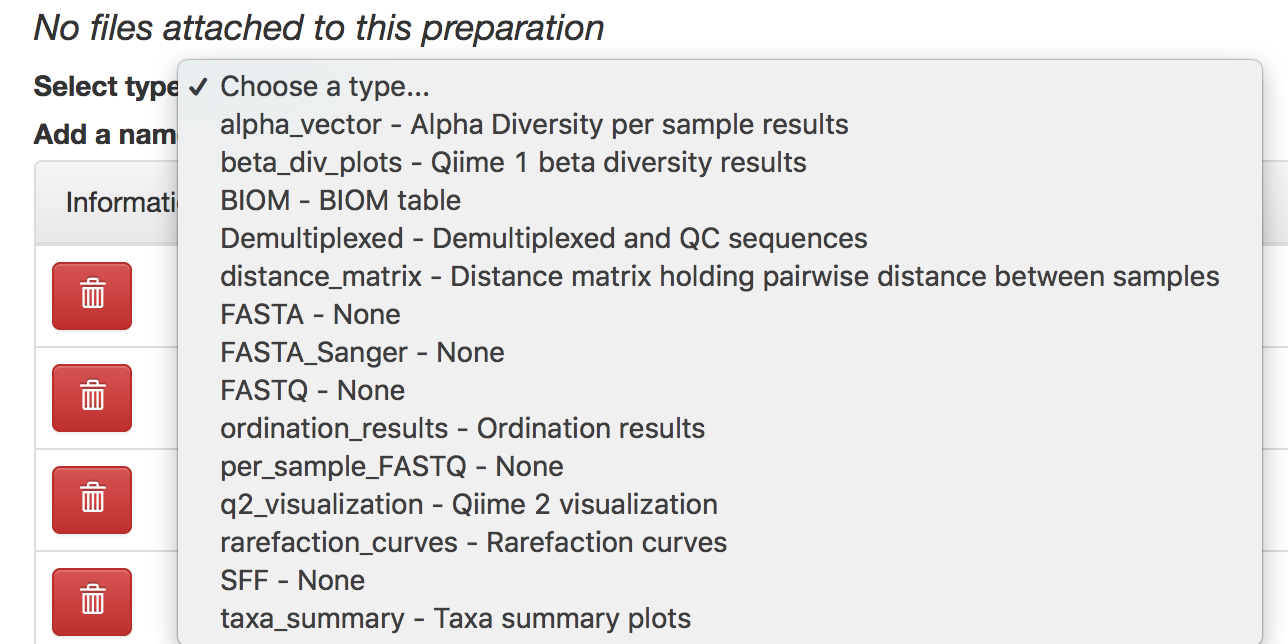Just noticed that when selecting the type of data that will be attached to a preparation, alpha diversity vectors, beta diversity results, and others are available options. See screencapture: