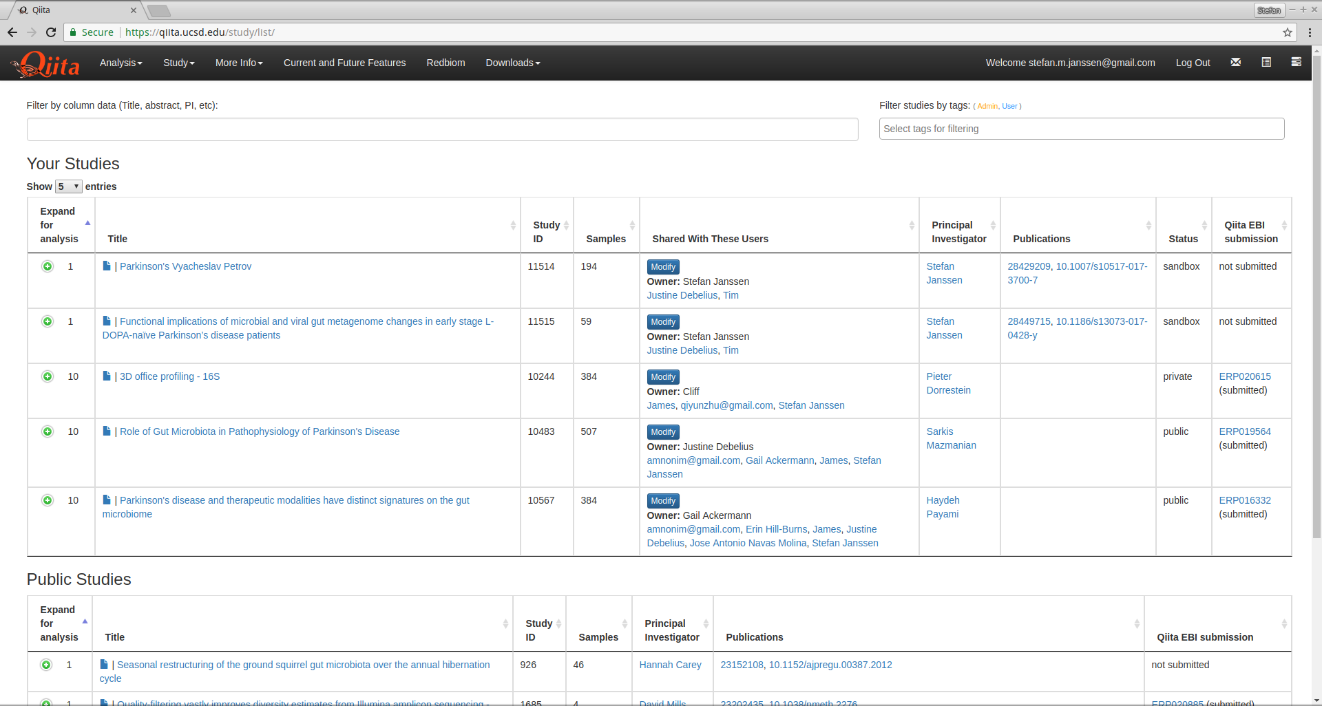 I am missing the buttons to browse through my own studies in the study overview, since I do have approx 20, but I only see the first five listed:  My current workaround is to show 50 studies per page. Same in Firefox and Chrome