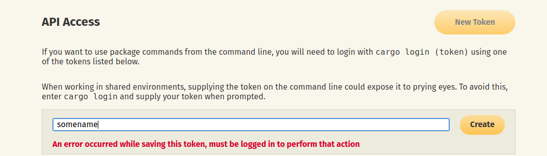 I have recently signed up to crates.io via my github profile and I'm not trying to crate an API key to upload a crate.