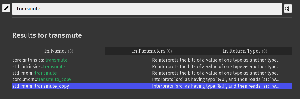 is unavailable. Searching for "core transmute" online only pulls upcore::intrinsics::transmute