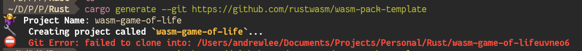 ⛔ Git Error: failed to clone into: /Users/andrewlee/Documents/Projects/Personal/Rust/wasm-game-of-life4g21l6