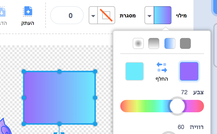 The preview of the gradient doesn't match what's actually applied when an item is selected or filled with the fill bucket. I'm not sure if the fill/select tools should change (that it fills right to left when you're in a right to left language, but if you switch languages, then suddenly the colors you have selected change) or if the two colors should not change sides, and in RTL there will be the weird behavior that the main color becomes the "second" color when switching to a gradient.