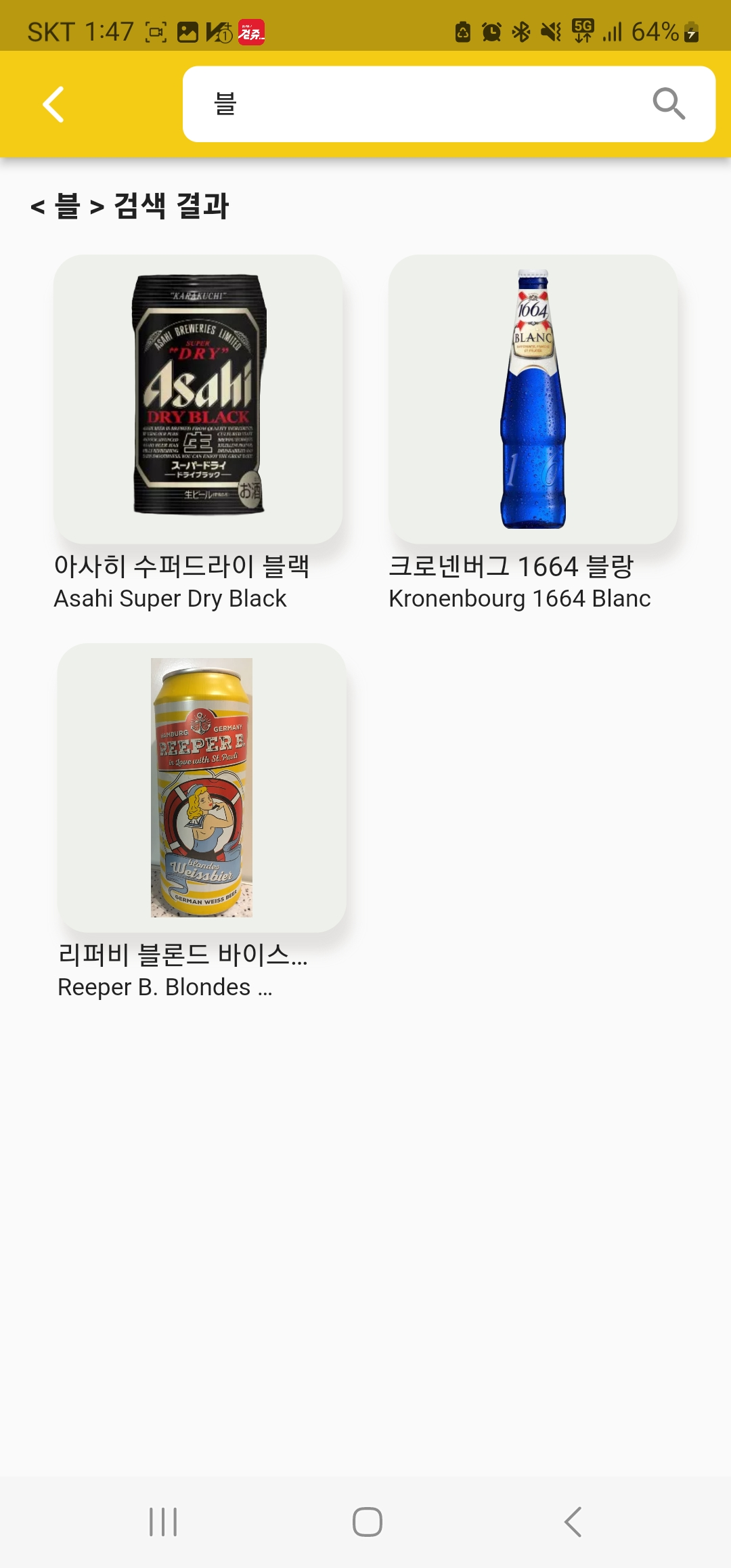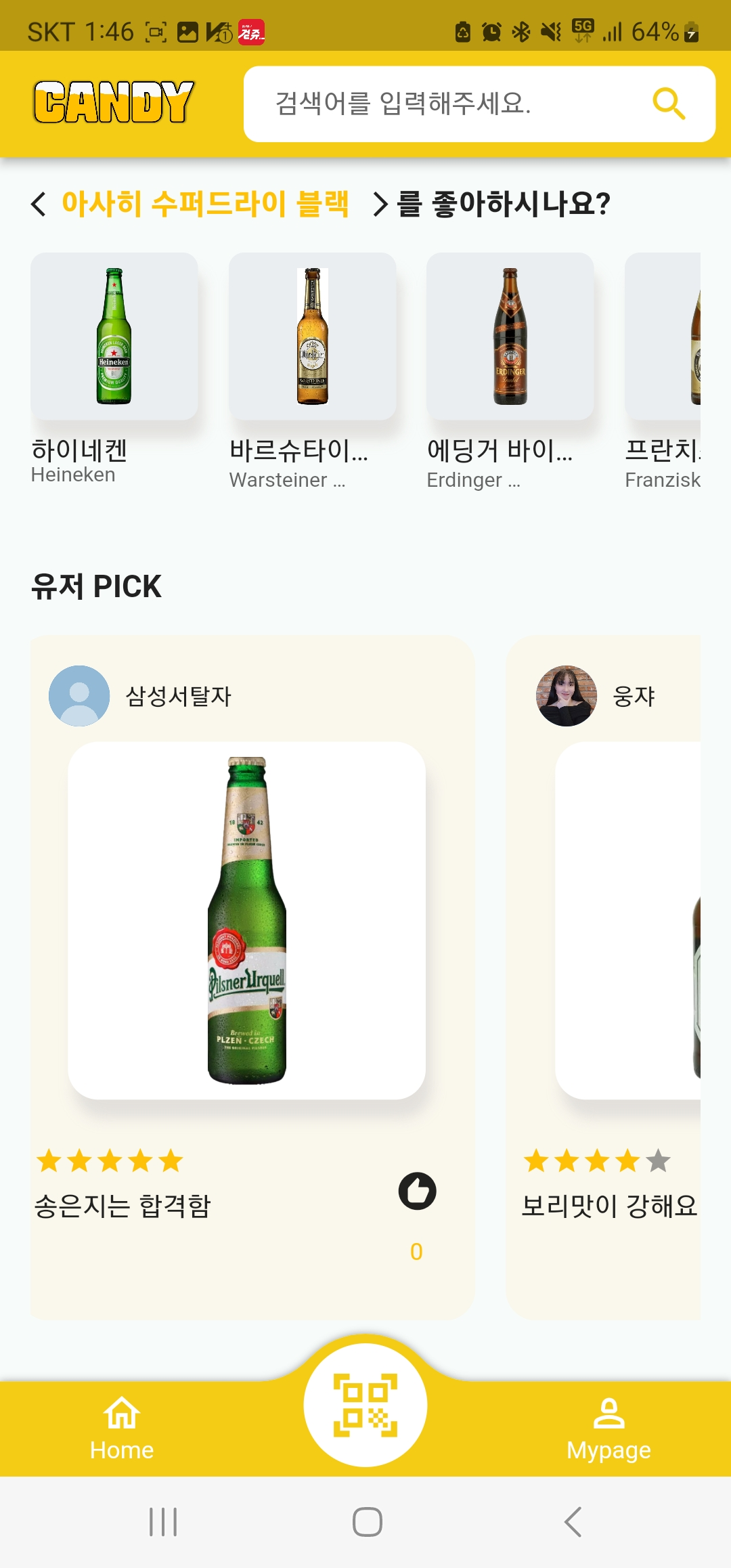 - 카메라로 바코드를 스캔해 맥주 정보와 리뷰 확인, 리뷰 남기기