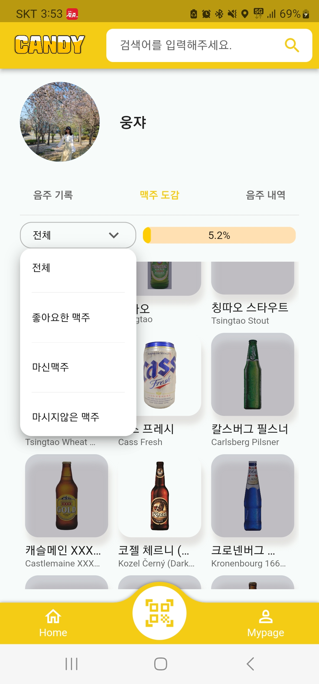 - 맥주 도감에서 총 맥주의 갯수 중 몇 개의 맥주를 마셨는지 퍼센트로 나오게 된다.
