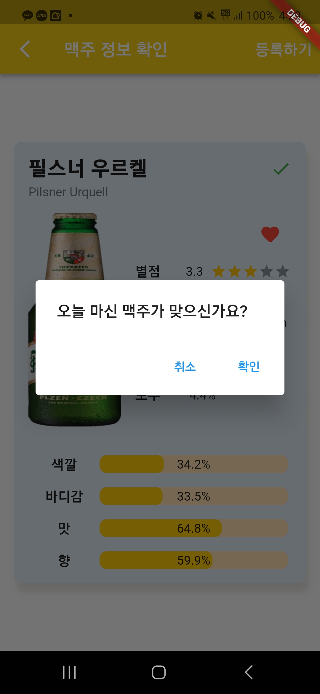 - ‘오늘 마신 맥주가 맞으십니까?’라는 팝업창이 나오고 확인 시 음주 기록이 추가된다.