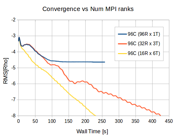 SingleGrid_IterationandMultiGrid_Iteration(including prolongations, smoothings and whatnot) is hybrid parallel.Threads are started in those functions which means that for a RANS case we enter parallel regions only twice per iteration, this should give minimal overhead, I will update the scalability results once they converge (statistically :) )