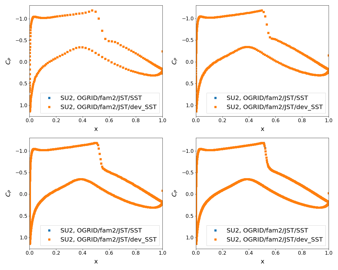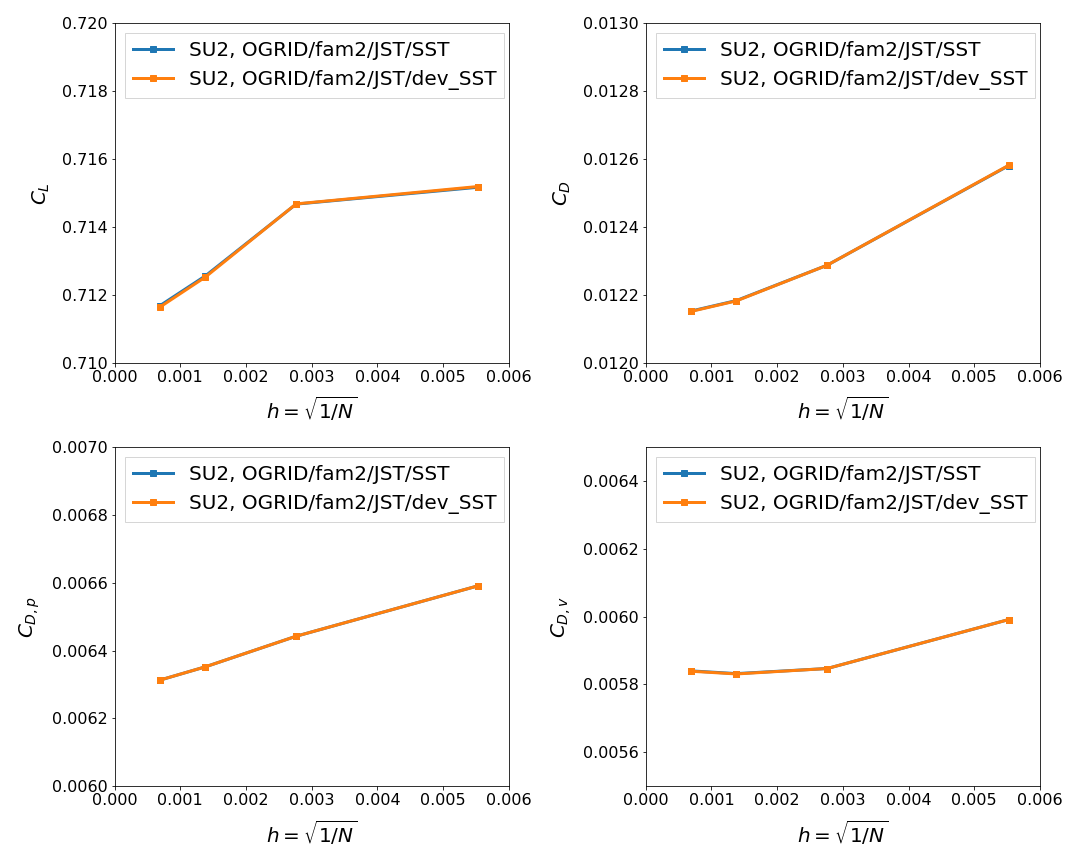 Sorry took a while to get around to it but here are the results from the validation cases that were requested. Turns out, this change is minimal in its effect to the overall simulation (at least for the two cases I have run) FlatplateFor the flatplate case, there was no difference in the C_D calculation so the lines mesh convergence were on top of each other. But while I was doing that, I was playing around with the solver parameters and there was an interesting difference between simulations run with This shows interesting parallels between RAE 2822Luckily I have been working on the RAE2822 as a validation case so I already had a family of grids that worked for this case. Again seems like the change didn't make much of a difference. dev_SST refers to the current SST implementation in develop. SST refers to the results from this PR |