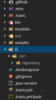 In Docker for Windows, if a drive is mounted and the container is not run as root, then the user running the container has permission issues with the mount. In this case, when I run ./run-in-docker.sh mvn package, it causes a folder to show up in VS Code that is a named