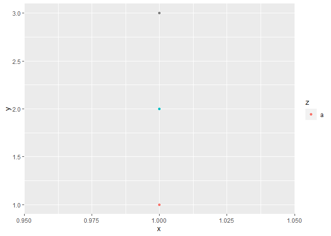 #> Warning: Removed 2 rows containing missing values (geom_point).p + scale_colour_manual(breaks = "a", values = "black")
