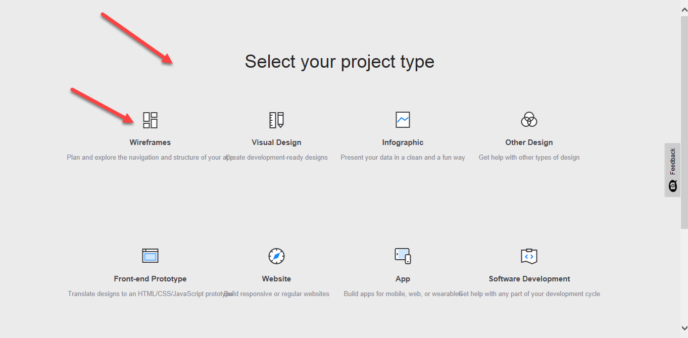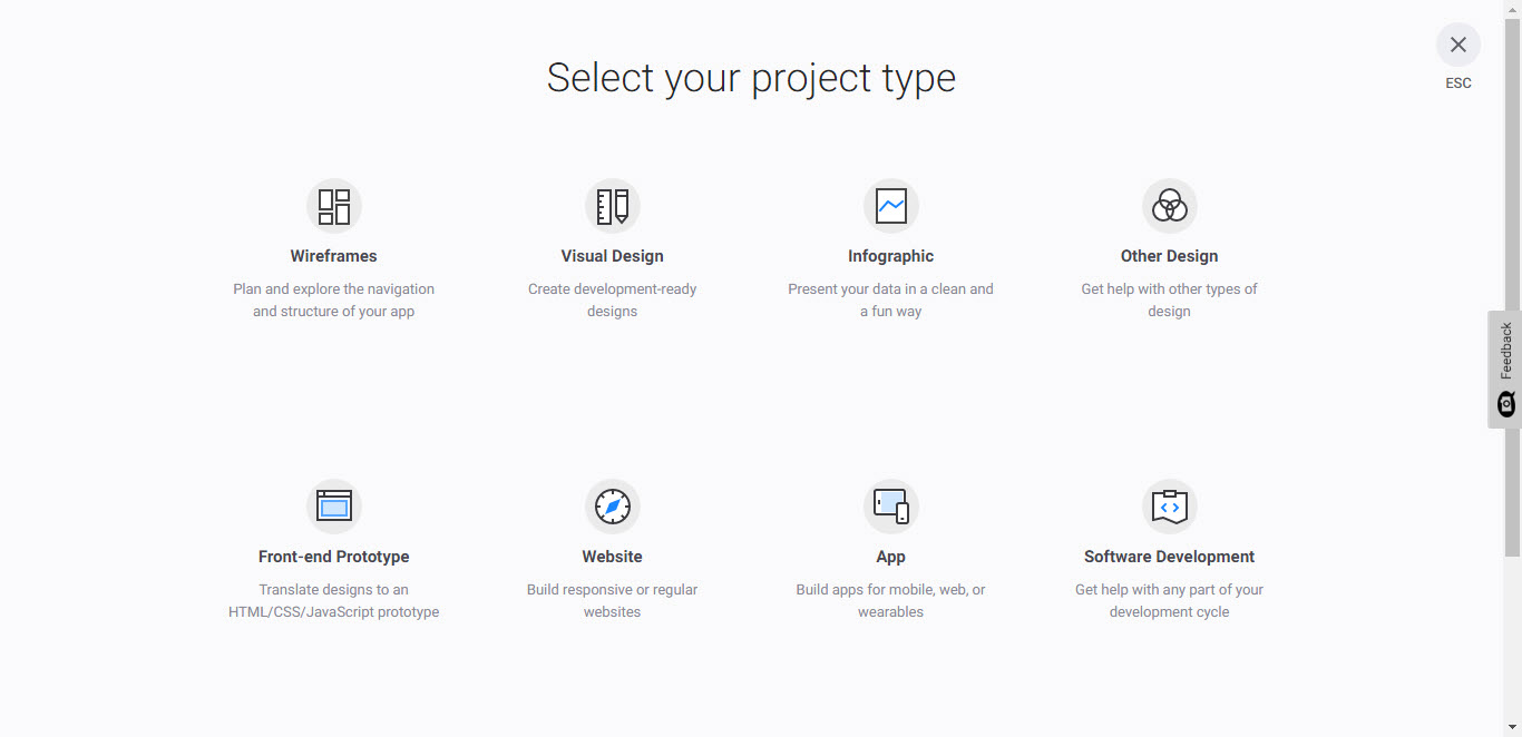 - 'Select your project type' page background color must white and there is a gray circle around the icon