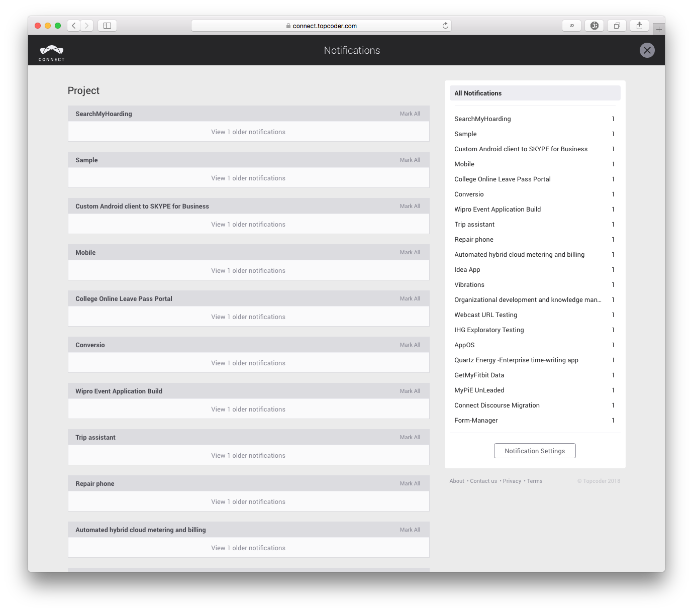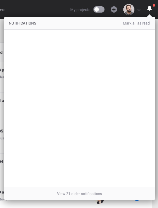 The dropdown menu shows nothing, but there is a link for "Older" notification.