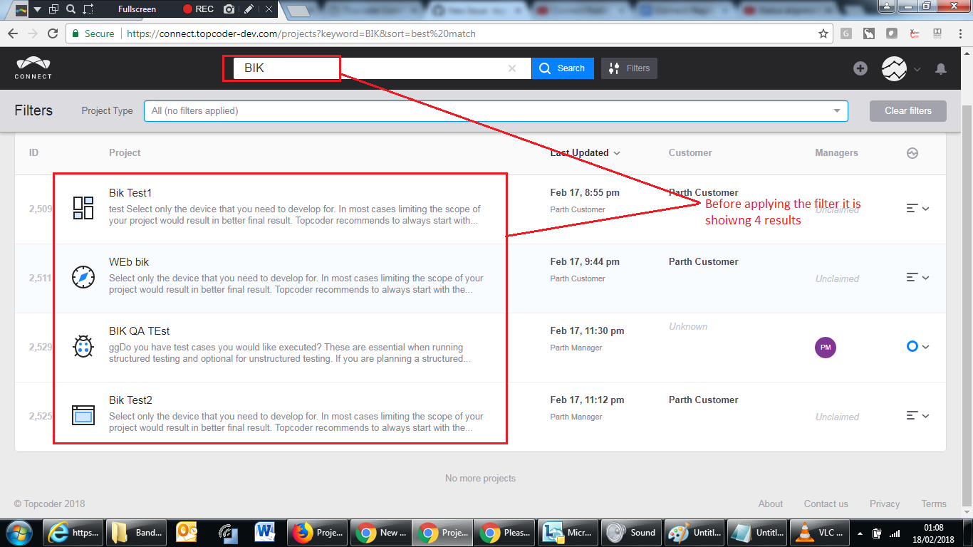 Ex: Here i have searched for BIK , then it is displayed 4 results and none of them are chatbot project.