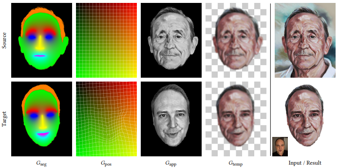 The ebsynth repository provides code to perform facestyle which transfers the style of a portrait painting onto another person's photograph.