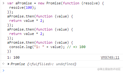 - 在 onFulfilled 中发生异常的话,在 onRejected 中是捕获不到这个异常的。